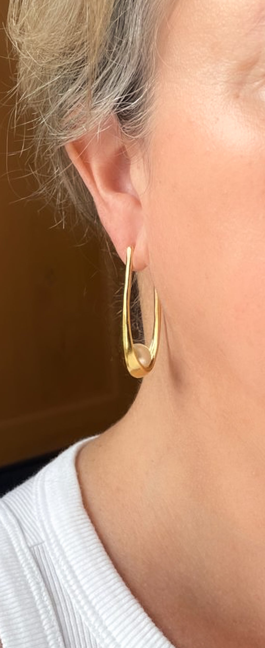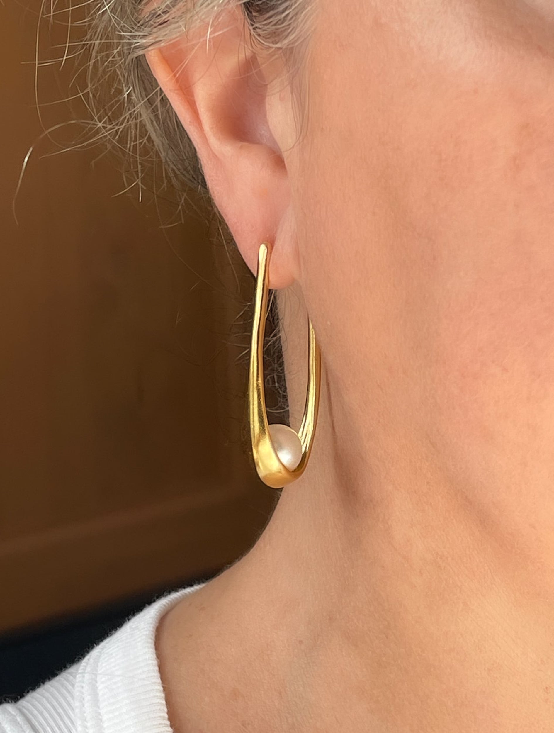 These sophisticated matte gold-plated hoops will enhance your outfit with style. They are made of brass with a 22kt gold plating and feature faux pearls. The hoops measure 1 3/4 inches in length and come with posts.