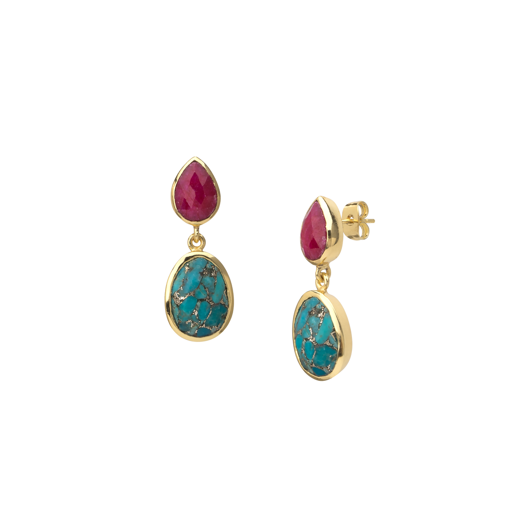 Vibrant ruby and hand picked turquoise make these earrings a must. Approximately 1 1/4″ length. Give your look a splash of color—and a lot of panache—with these showstopping earrings. (All with a petite, punchy 1 1/4″)!